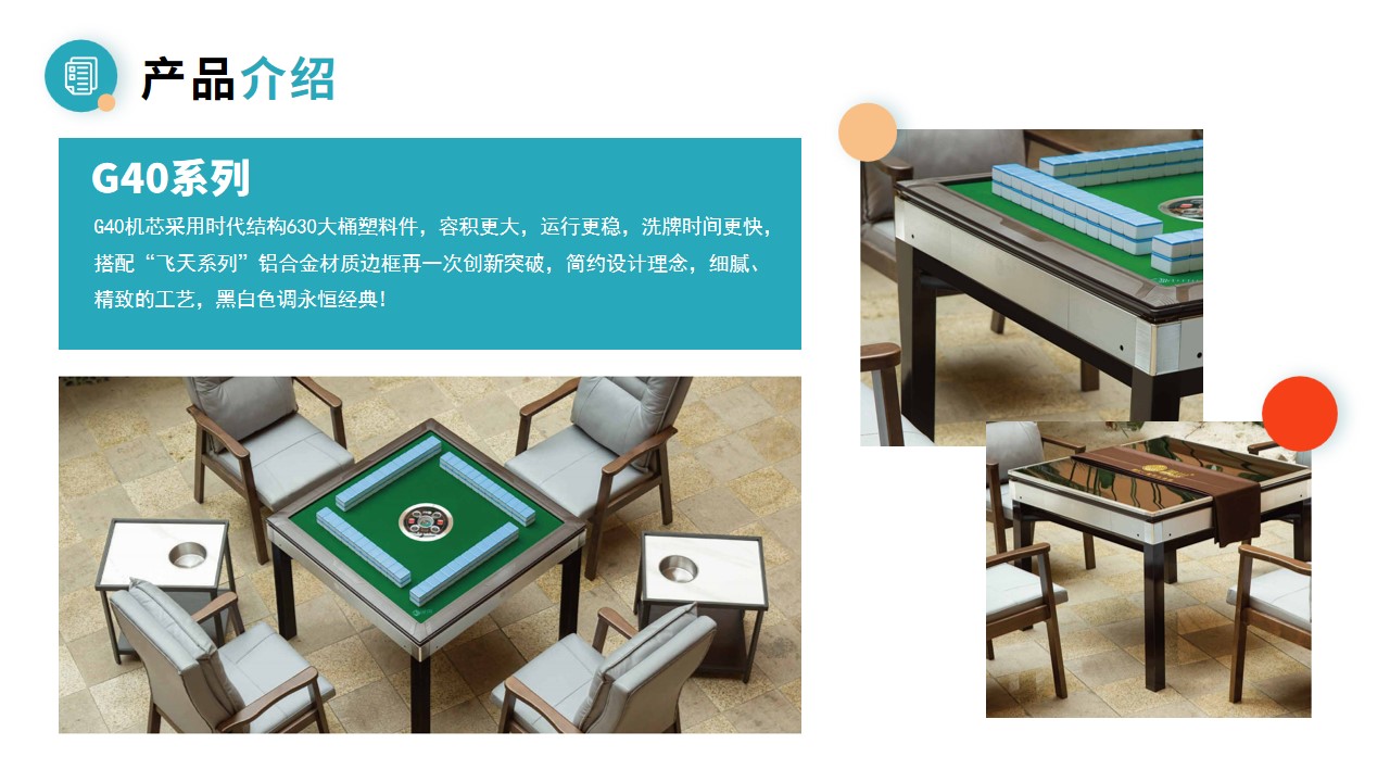 G40机芯采用时代结构630大桶塑料件,容积更大,运行更稳,洗牌时间更快,搭配“飞天系列”铝合金材质边框再一次创新突破,简约设计理念,细腻、精致的工艺,黑白色调永恒经典!